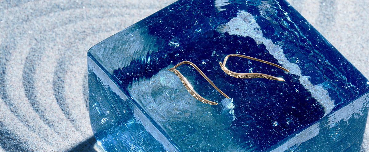 K18 2-Way Random-Cut Wave Design Pierced Earrings_ウェーブカットデザインピアス