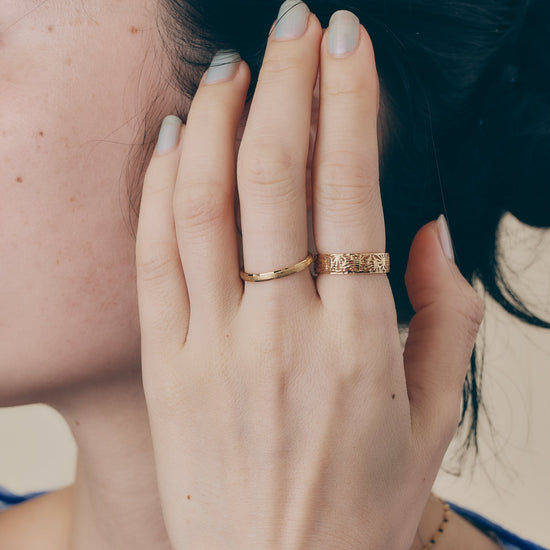 K18 Openwork Random Cut Wide Ring_透かしデザインワイドリング